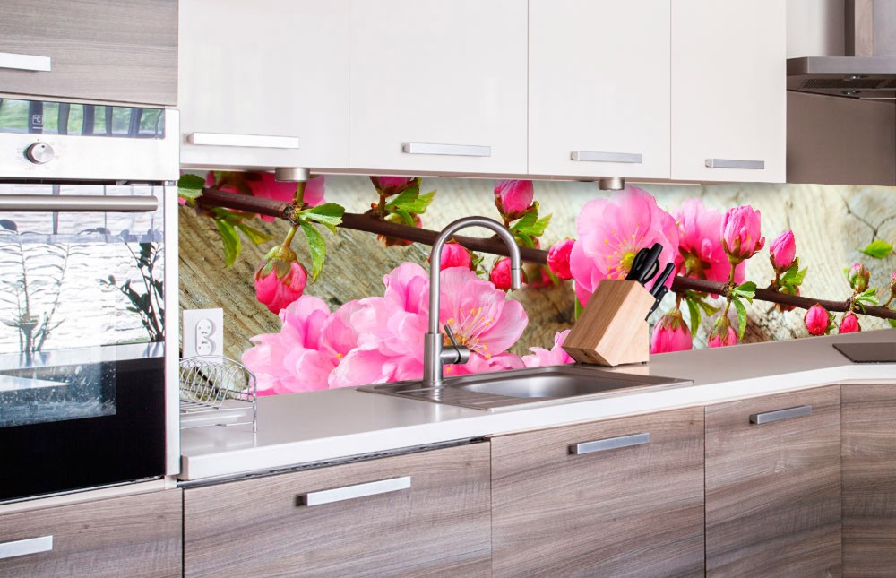 "> Virágzó cseresznyefaág, konyhai matrica hátfal, 260 cm - Önt