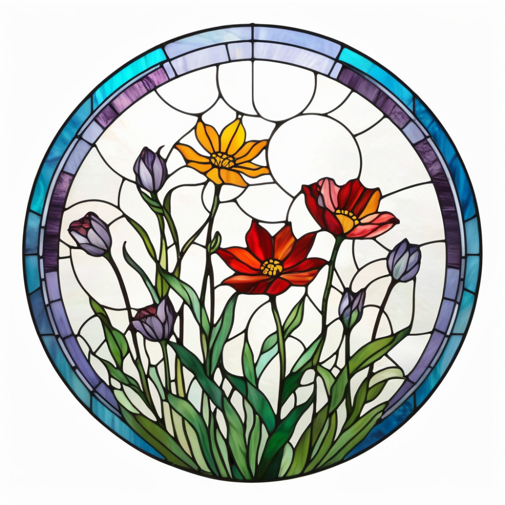 "> Virágoskert, ólomüveg hatású ablakmatrica - Öntapadós Dekorá
