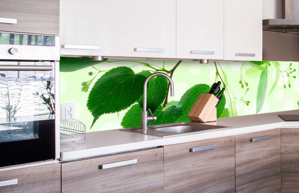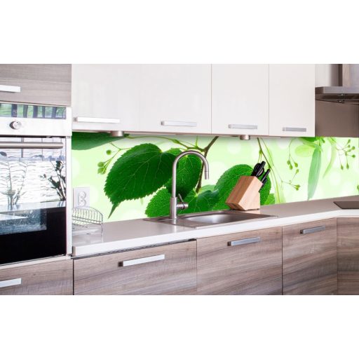 Zöld levelek, konyhai matrica hátfal, 260 cm