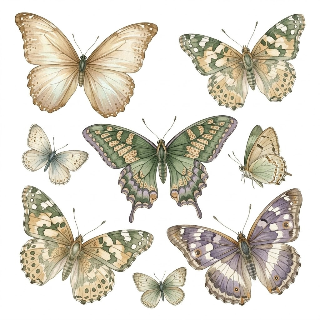 Zöld szett pillangók, ragasztómentes ablakmatrica