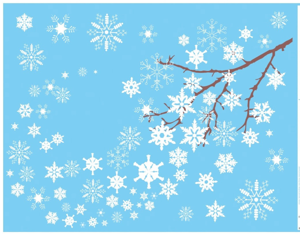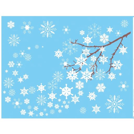 Ágakról hulló csillogó hópelyhek, többször használható ablakmatrica