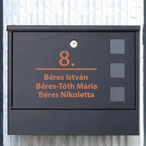 Az ajtószám matrica magassága 2,5 cm, a vonallal együtt 3,5 cm magasak. Ennek a betűtípusa állandó.