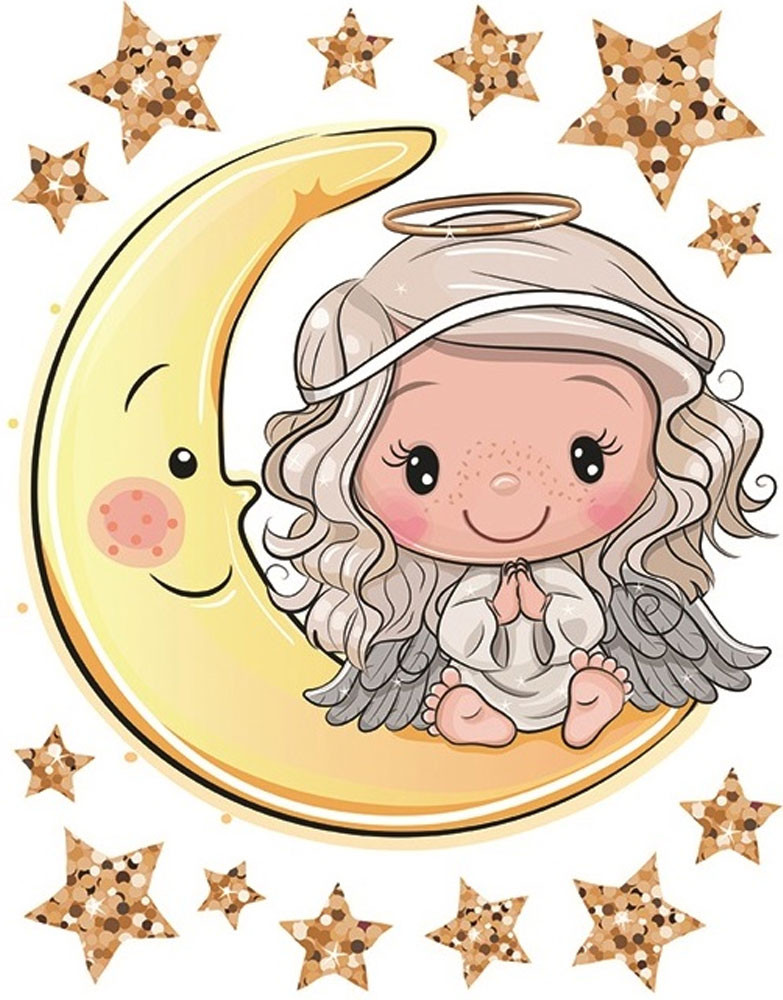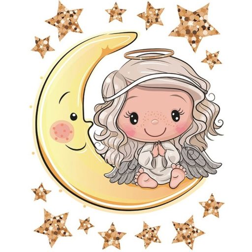 Angyal a holdon, csillogó színes sztatikus matrica ablakra