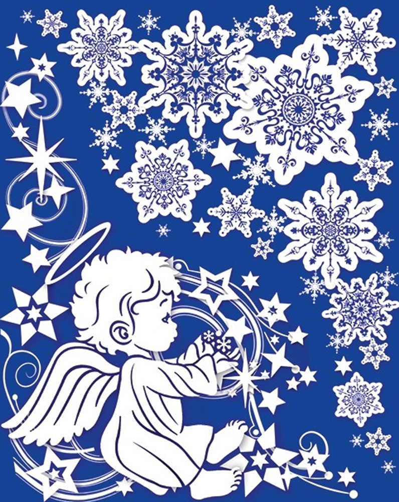 Angyalkás csillámos karácsonyi sarokminta ablakra