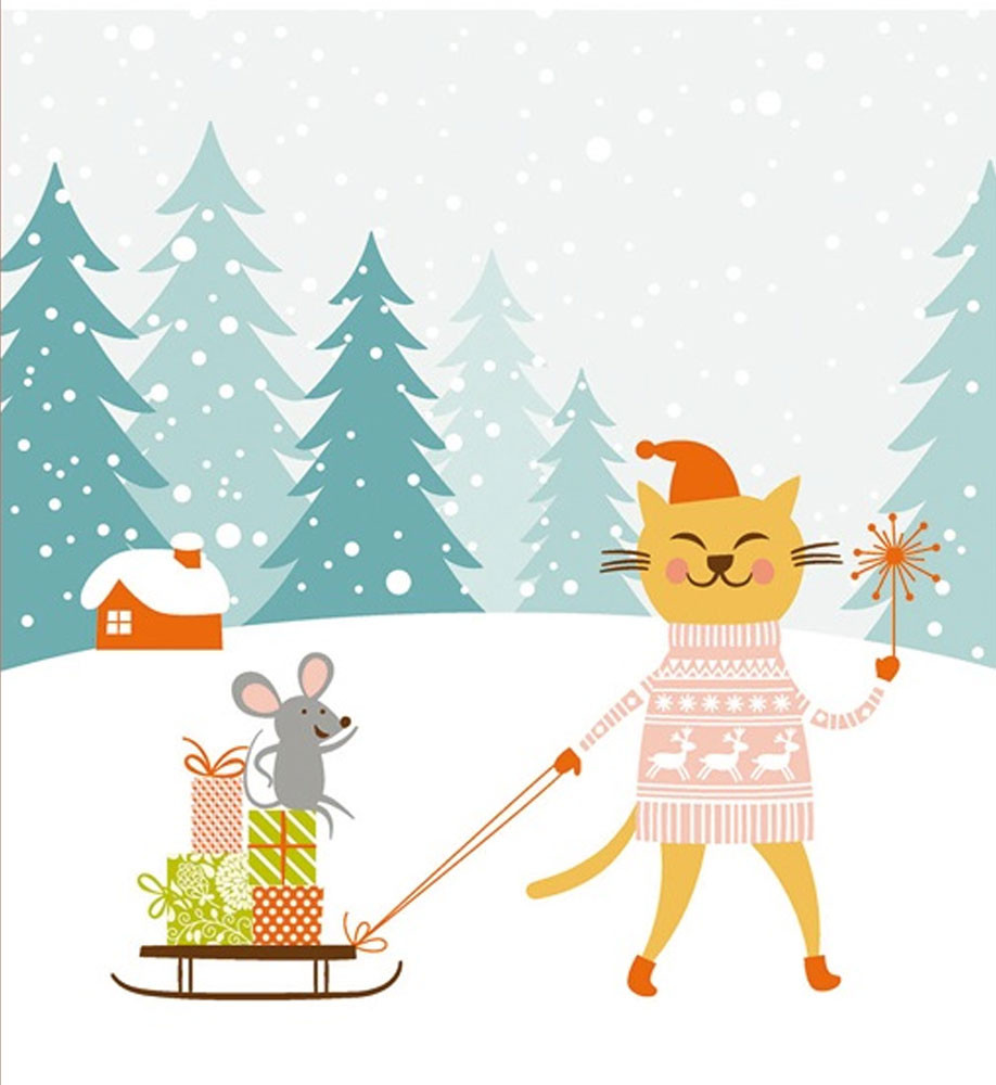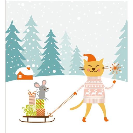 "> Cica és kisegér karácsonykor, csillámos sztatikus gyerekmatr