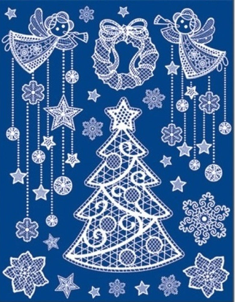 Csipkés karácsonyfa, többször használható üvegmatrica