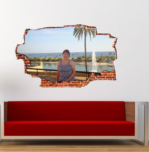 A matrica egyedi méretben és dizájnban rendelhető, így tökéletesen illeszkedik bármilyen falfelülethez, legyen szó nappali, hálószoba, vagy akár irodai dekorációról. Az áttört téglafal hatás a kép mögötti háttér látványos részleteit is kiemeli, miközben egy szellős, dinamikus hatást kelt, amely friss és modern légkört varázsol a térbe.