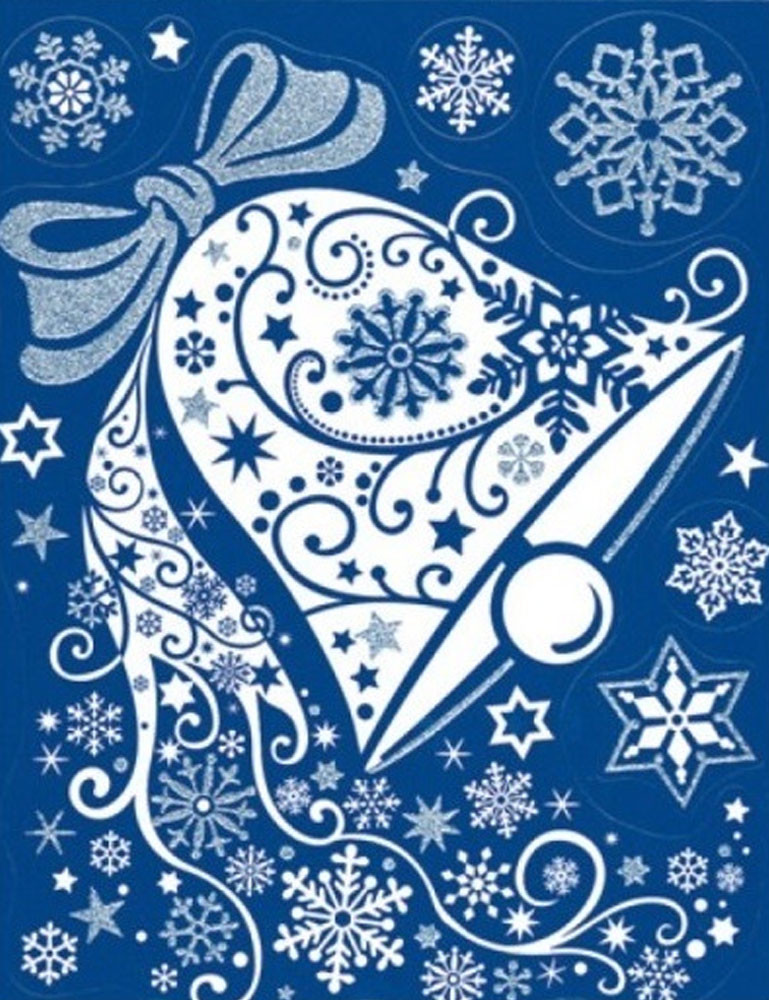 Harangzúgás a hóesésben, csillámos matrica karácsonyra