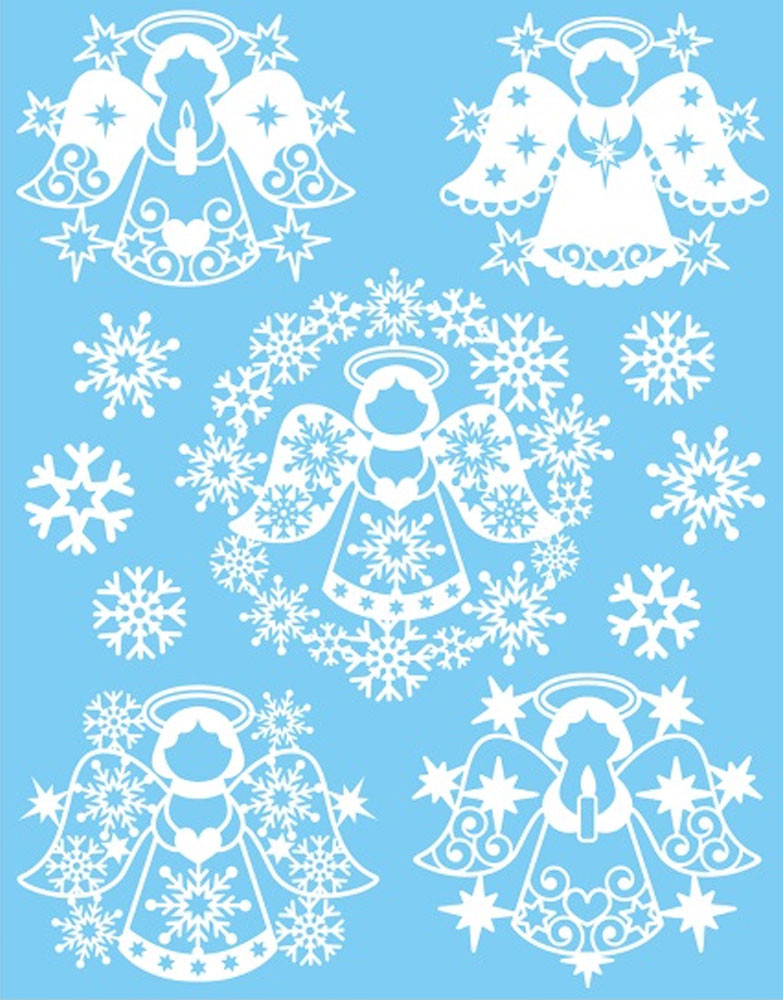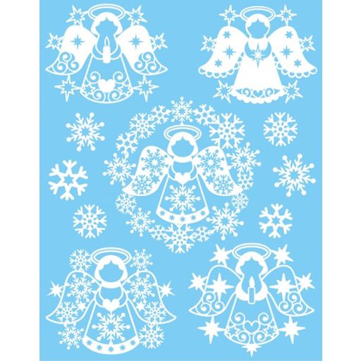 Karácsonyi csillámos angyalok, ablakmatrica ragasztó nélkül