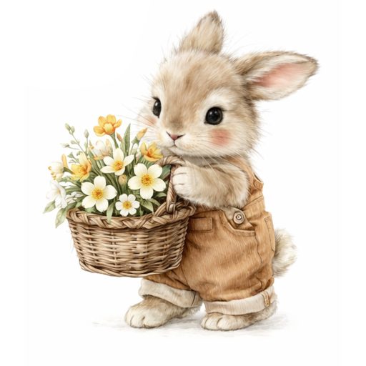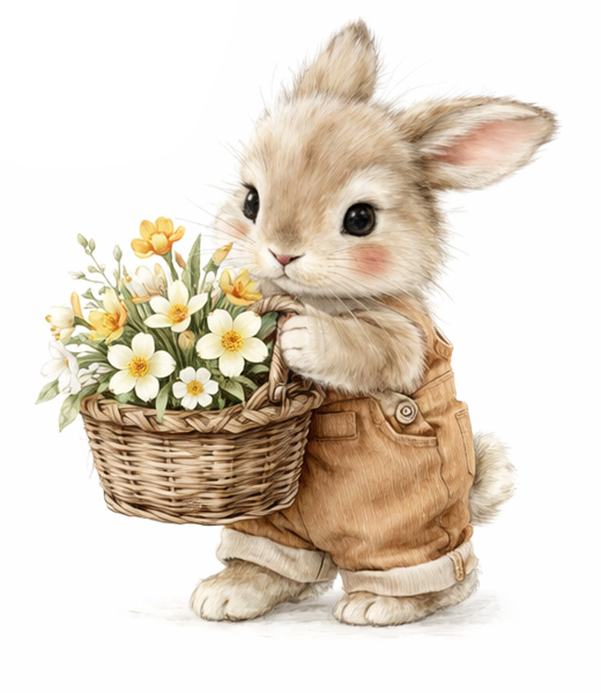 Nyuszkó tavaszi virágkosárral, ragasztómentes ablakmatrica