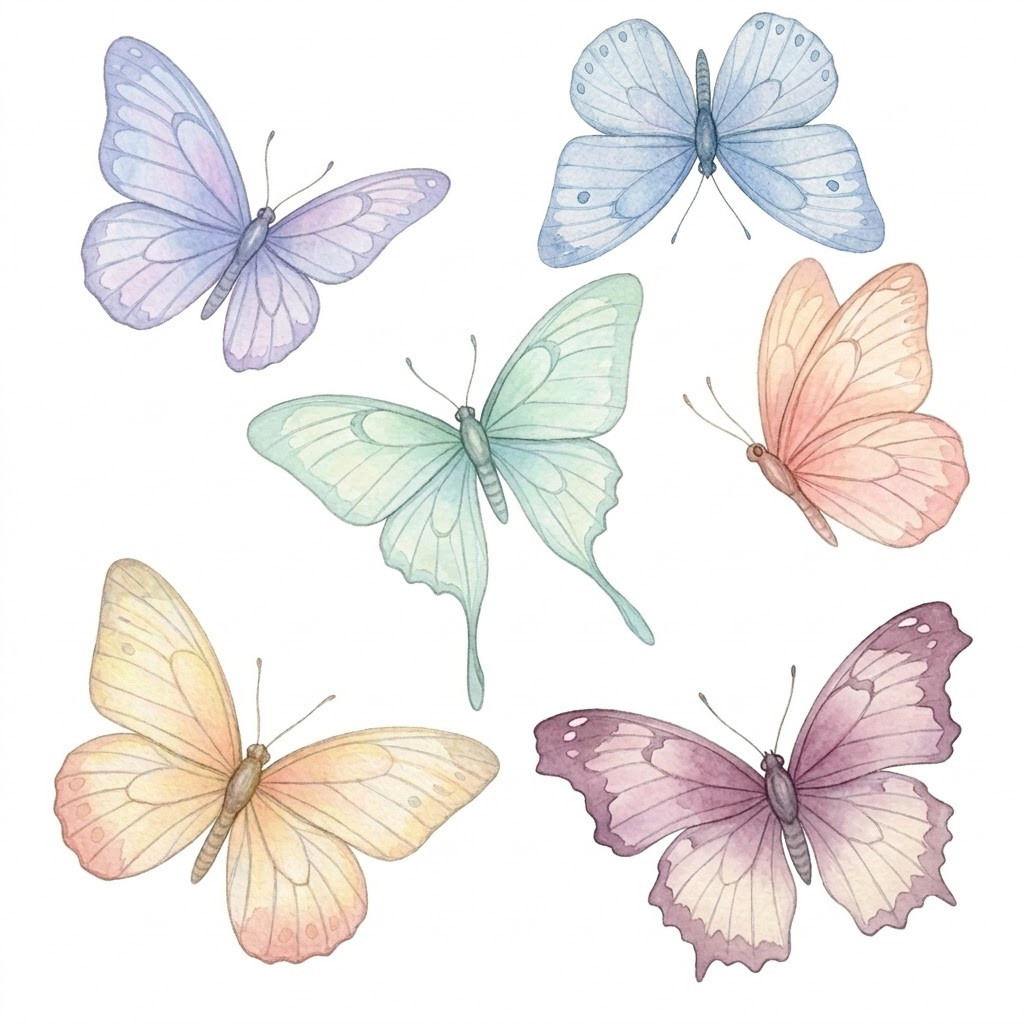 Pasztell színű pillangók, ragasztómentes ablakmatrica