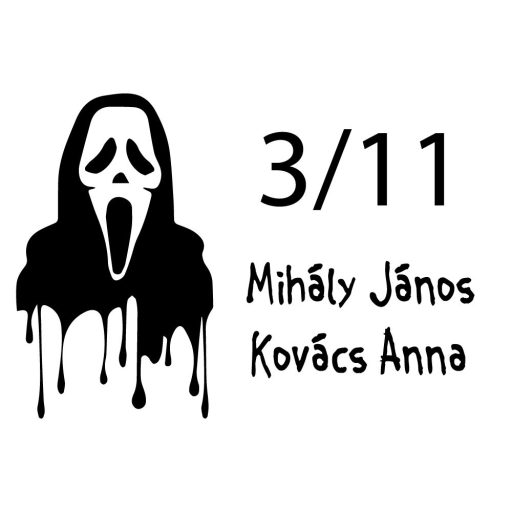 Válaszd ki a legördülő sávban a betűk, és ajtószámszám színét. A sikoly matrica fekete marad, persze ha szeretnéd ezt is színezni, kérlek, írd bele a megjegyzés rovatba.
