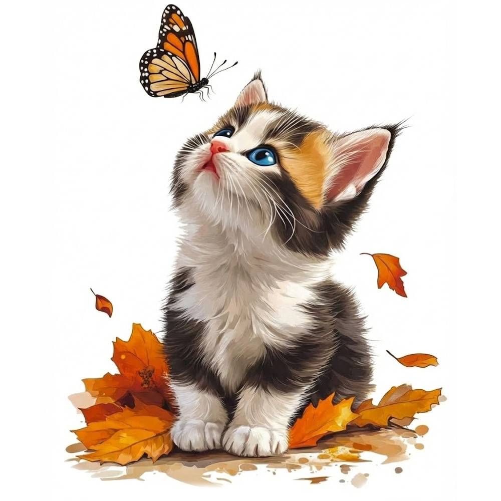 Aranyos kiscica, amint éppen egy pillangót figyel. Őszi hangulat, meleg színek, még a nyár utolsó hetei elevenednek meg ezen a matricán. Többször használható, nyom nélkül cserélhető dekoráció. Kipróbálod?
