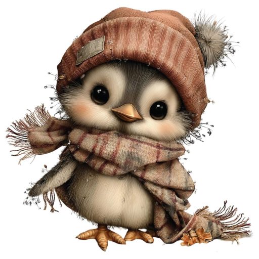 Kismadárka téli cuccban, sztatikus ablakmatrica