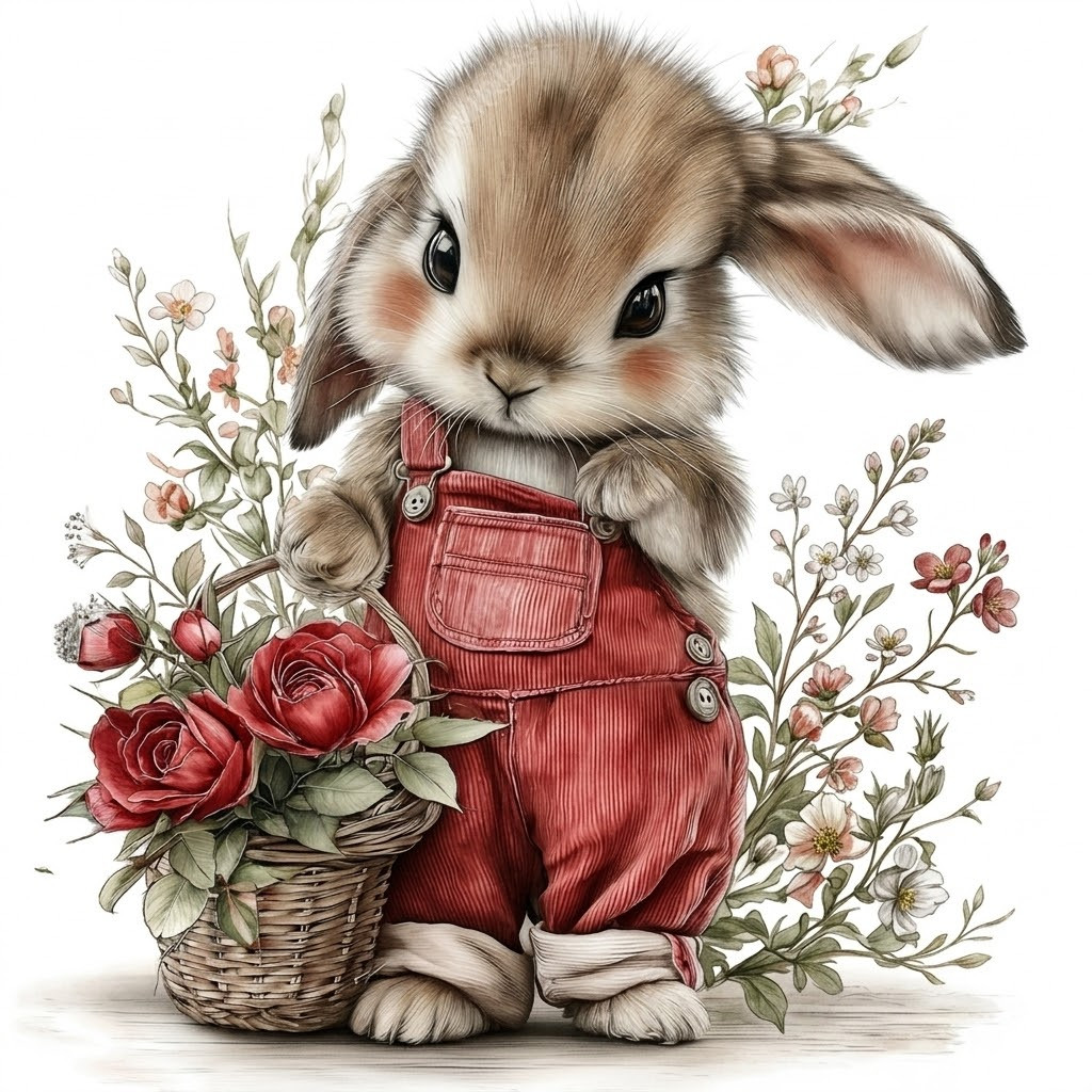 Nyuszi egy kosár rózsával, sztatikus ablakmatrica