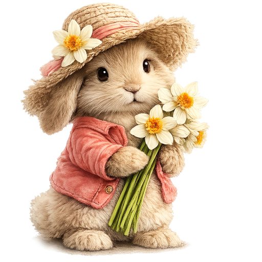 Nyuszi nárciszokkal, sztatikus ablakmatrica