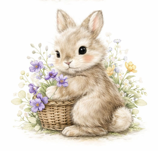 "> Nyuszi virágkosárral, sztatikus fólia üvegre | Dekormatricák