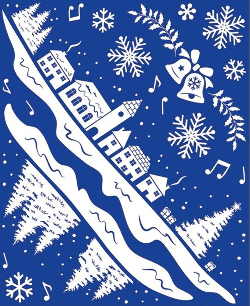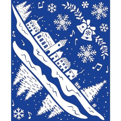 Tél éjjeli városka, ragasztó nélküli ablakdekor