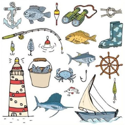 Tenger és halászat témájú ablakmatrica gyerekeknek