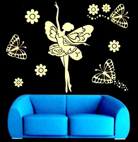 Tündér pillangókkal, éjjel világító falmatrica